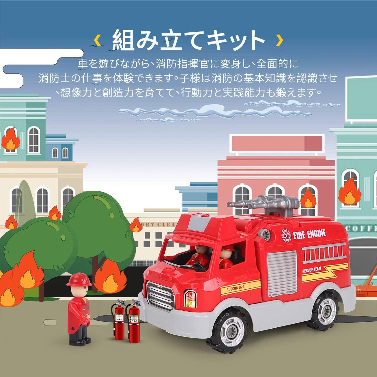 Amazon Remoking 車おもちゃ 組み立ておもちゃ 消防車おもちゃ Diy 車セット おもちゃ 男の子 子供玩具 知育 おもちゃ おもちゃ 女の子 サウンドポンプ消防車 子供向け ごっこ遊び 子供玩具 音と光と手遊びいっぱい 付き26ピース 緊急車セット 知育玩具 作業車 工具